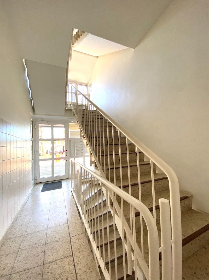 Die Fassade dieses Bürohauses verfügt durch ihre klare Liniengebung über eine moderne Ausstrahlung. Erreichbar sind die einzelnen Mietbereiche über ein freundliches und helles Treppenhaus.